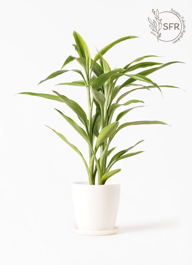 ドラセナの花言葉「幸福」を添えて、開店祝いや新築祝いなどにおすすめです。デザイン性の高い鉢カバーと組み合わせるとワンランクアップした贈り物になります。